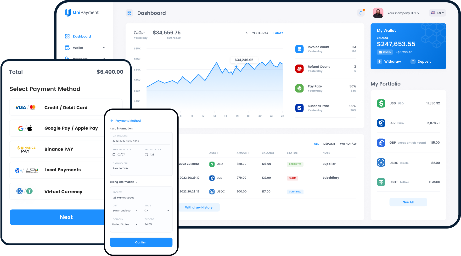 UniPayment provides real-time rates based on competitive market data. Our pricing is transparent, with clear breakdowns of conversion rates and fees before you confirm any transaction.
